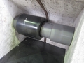 - 配管同士は離れています。片方の管にゴム製スリーブジョイントがはまっています。上にあるのは管の保護スリーブ